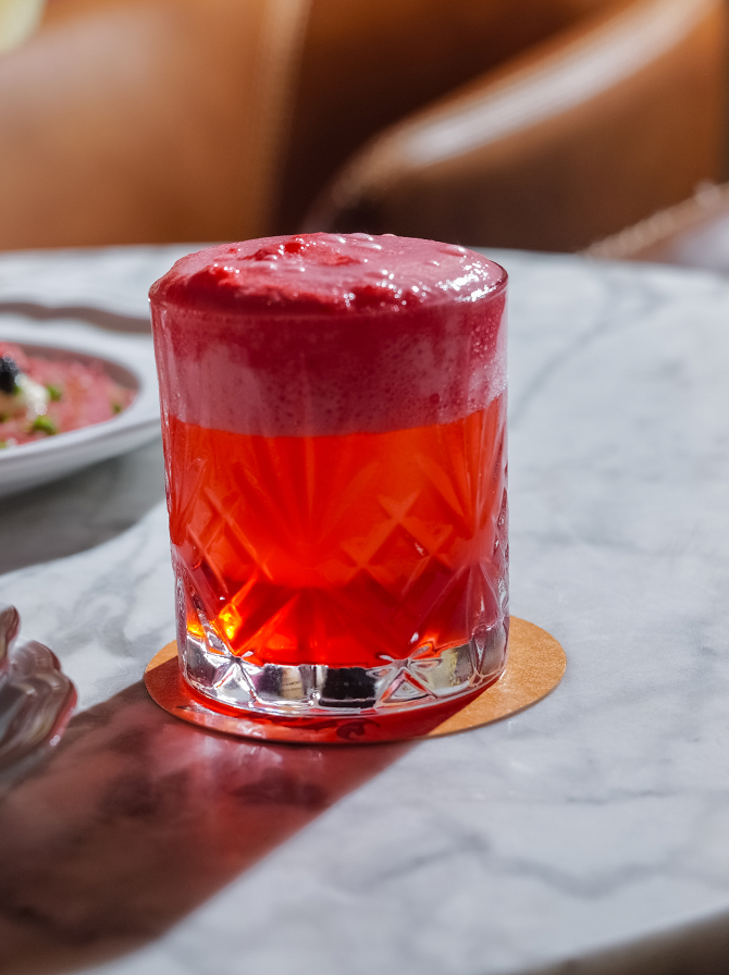 No3 gin, plum campari, sweet vermouth, cappuccino foam, cocoa dust