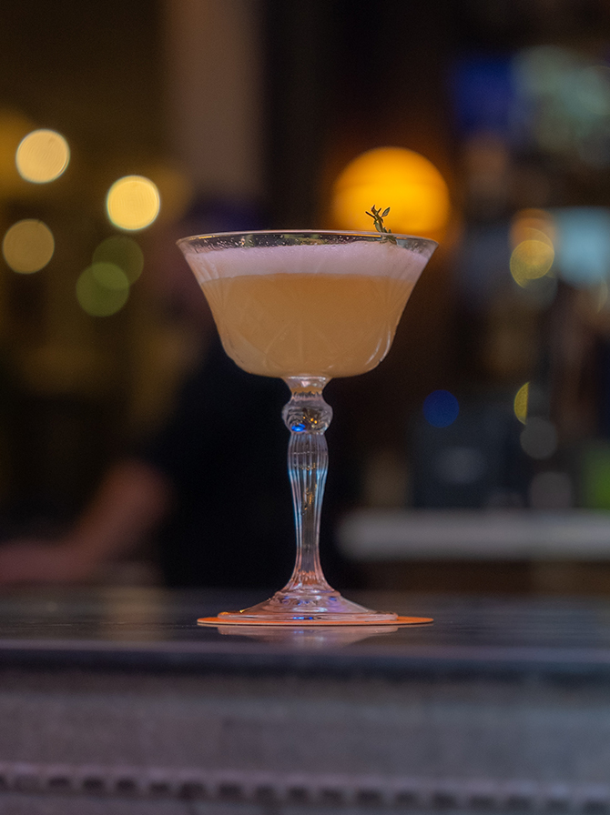 No3 gin, Italicus (EVOO fatwashed), lemon, honey-thyme, egg white